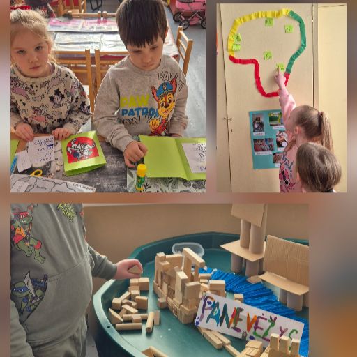 Vasario 16-oji – ypatinga diena Lietuvai. Ji simbolizuoja vienybę ir meilę Tėvynei. STEAM savaitę „Geltona, žalia, raudona“ pradėjome kelione po Lietuvą. Vaikai susipažino su Lietuvos žemėlapiu, pažymėjo miestus, kuriuos yra aplankę. Gaminosi Keliautojo pasą. Diskutavo, kaip galima keliauti po Lietuvą: autobusu, mašinomis pėsčiomis. statė savo gimtąjį miestą Panevėžį.